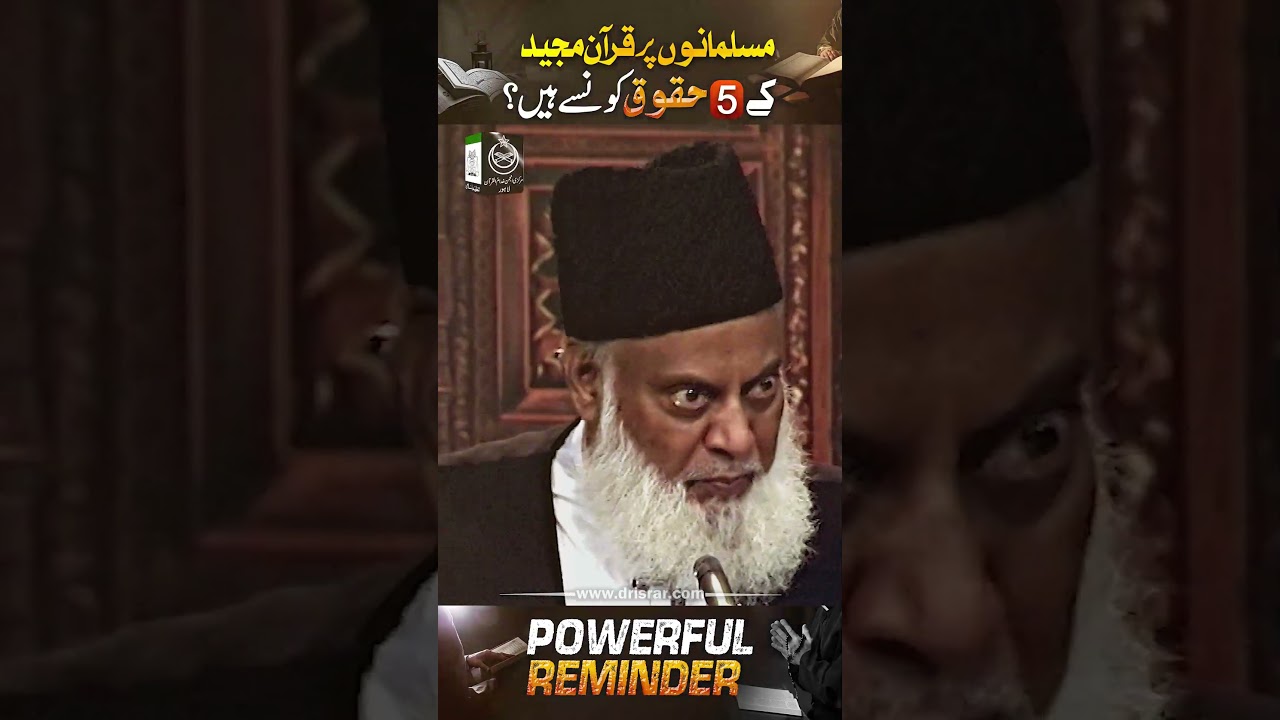 This lecture details the five rights the Quran has over every Muslim: belief, recitation with proper Tajweed, understanding, implementation in individual and collective life, and propagation. It emphasizes that fulfilling these rights is a collective responsibility requiring a societal system for enacting Islamic law. Failure to uphold these rights is likened to burdening a donkey with books, signifying a failure to bear the responsibility of divine guidance. The discussion highlights the importance of correct pronunciation, deep understanding (not just memorization), practical application of teachings in both personal and communal spheres, and the dissemination of knowledge to others. It stresses that collective duties, such as enforcing Sharia law (e.g., penalties for theft or adultery, prohibition of interest), necessitate an established system, not individual actions.
